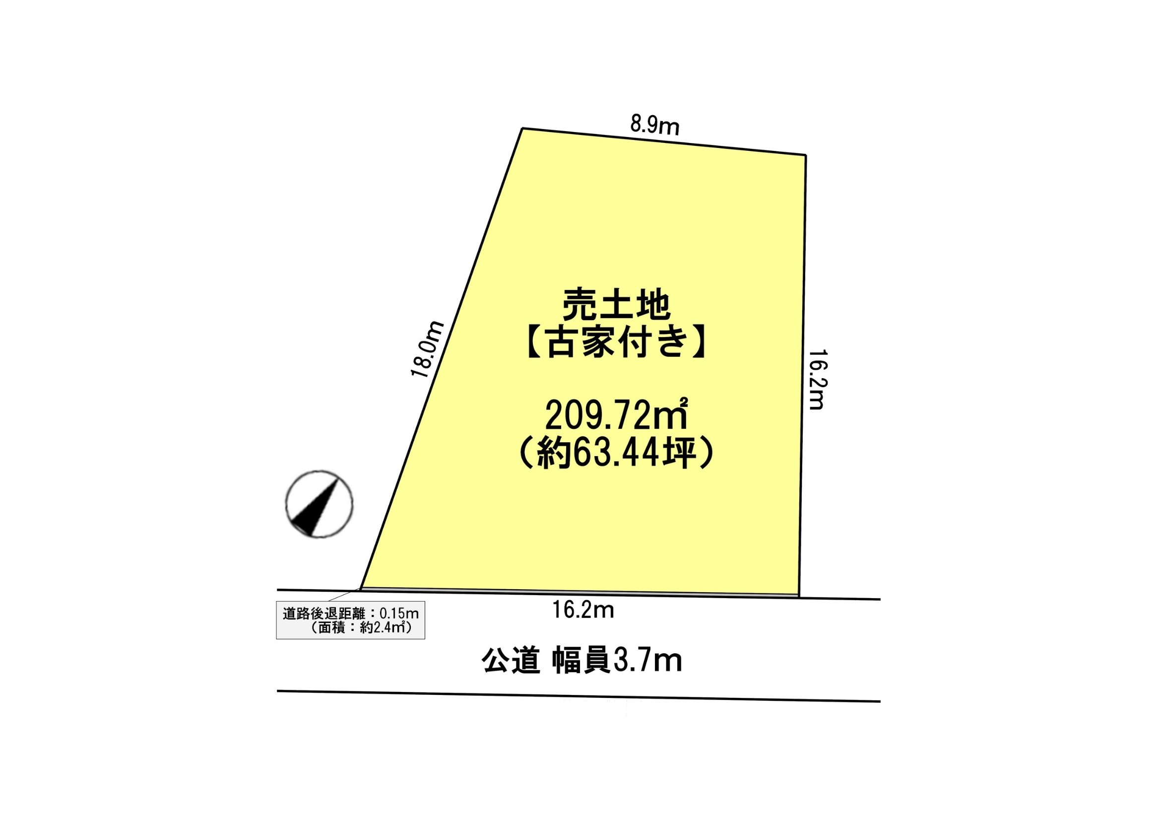 | 土地面積(m2/坪) | 209.72㎡/約63.44坪 | 地目、用途地域 | 第一種住居地域 |